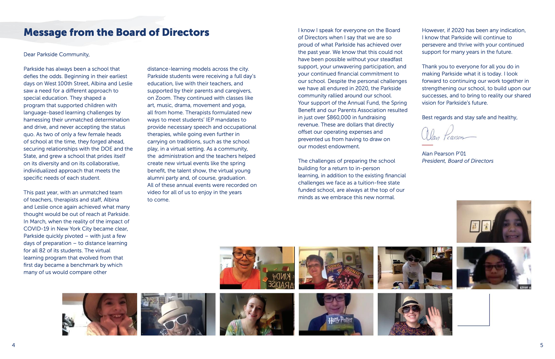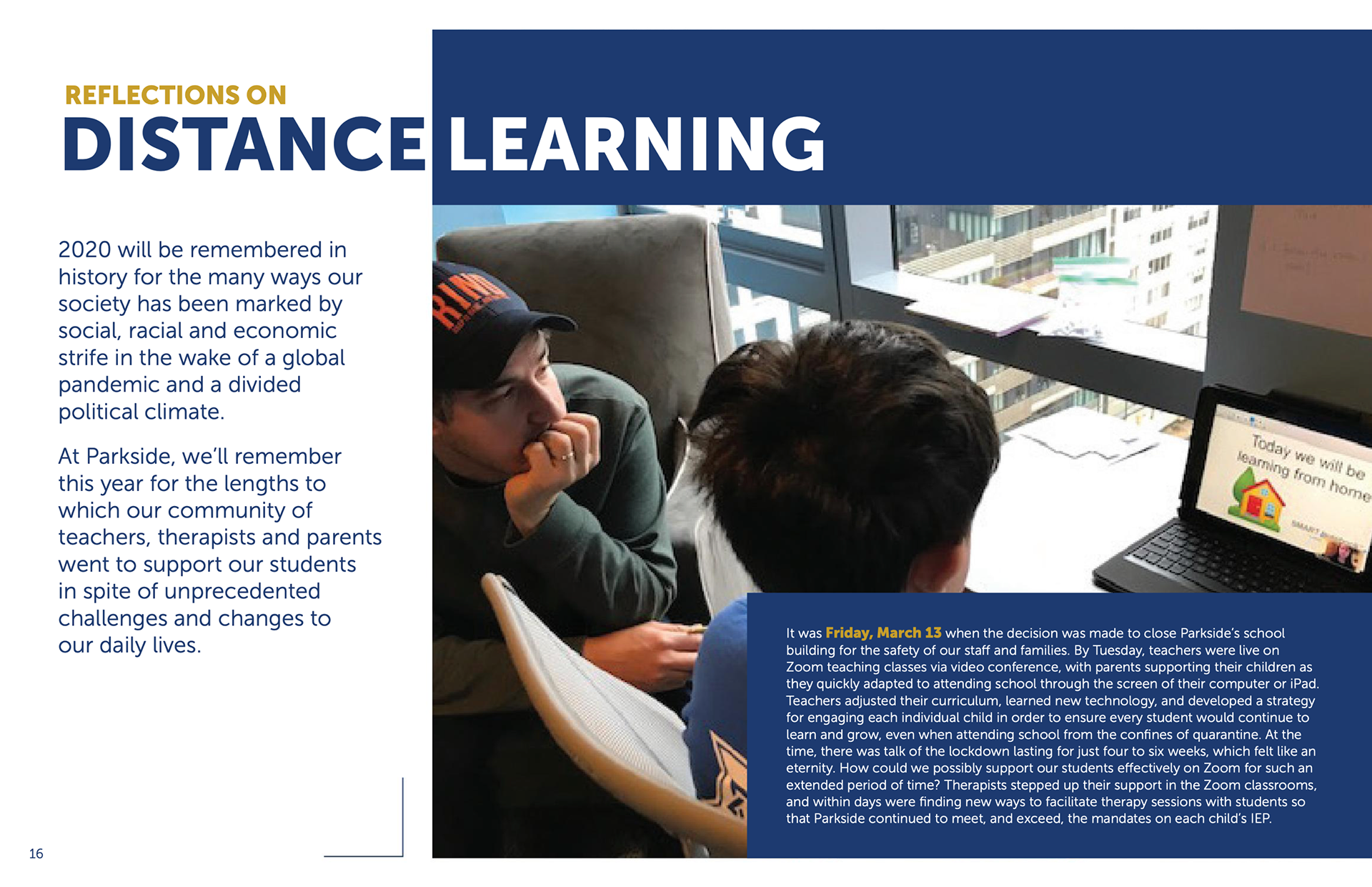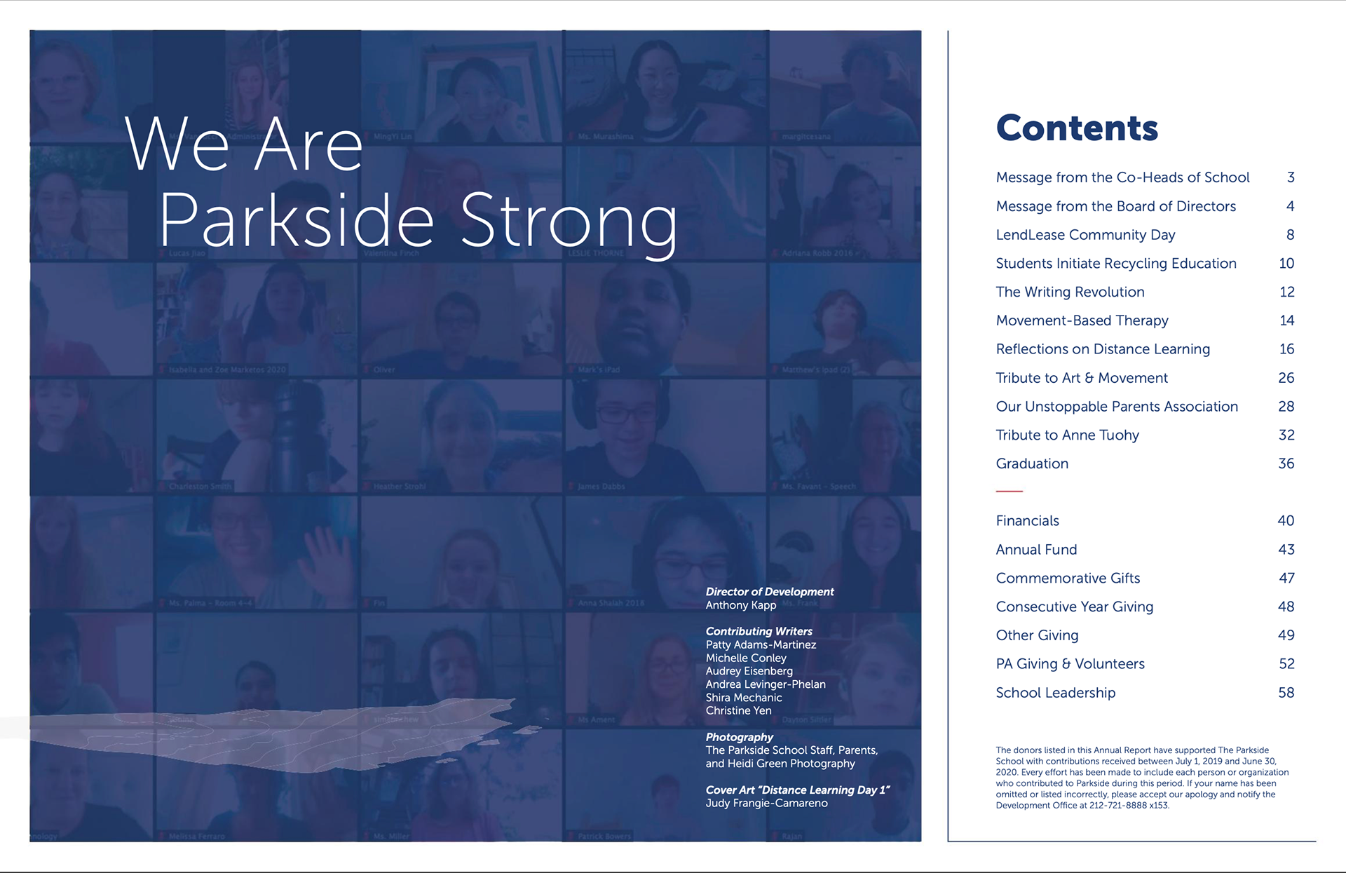 Parkside's 2020 Annual Report was published for the first time strictly online. (www.parksideschool.org/annual-report)